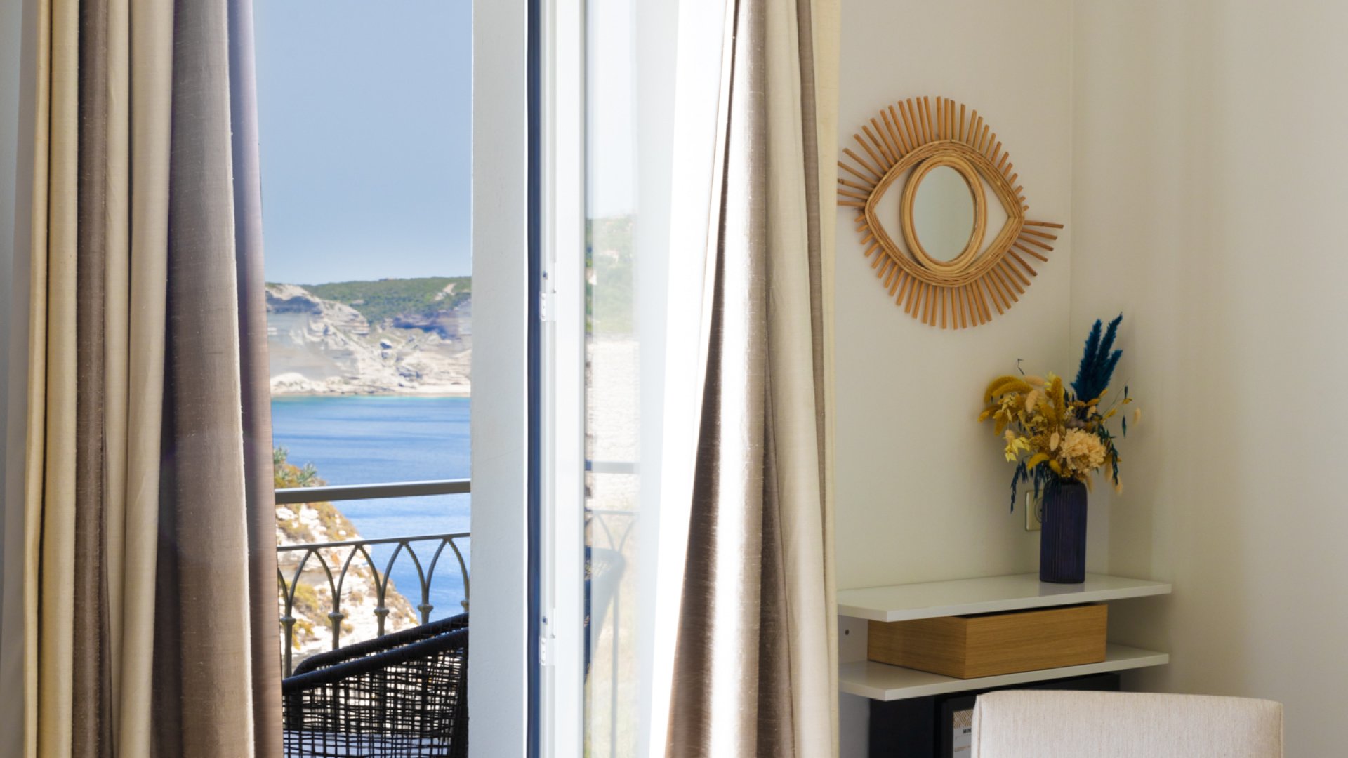 L'Hôtel Santateresa à Bonifacio, un établissement hors du temps, situé à l'Extrême Sud de la Corse. Ce havre de paix occupe une position unique en Corse du sud et offre une vue exceptionnelle et unique au monde, sur les célèbres falaises de Bonifacio, le mer Méditerrannée et la Sardaigne. Evadez-vous et appréciez la douceur de vivre de ce lieu unique au monde.